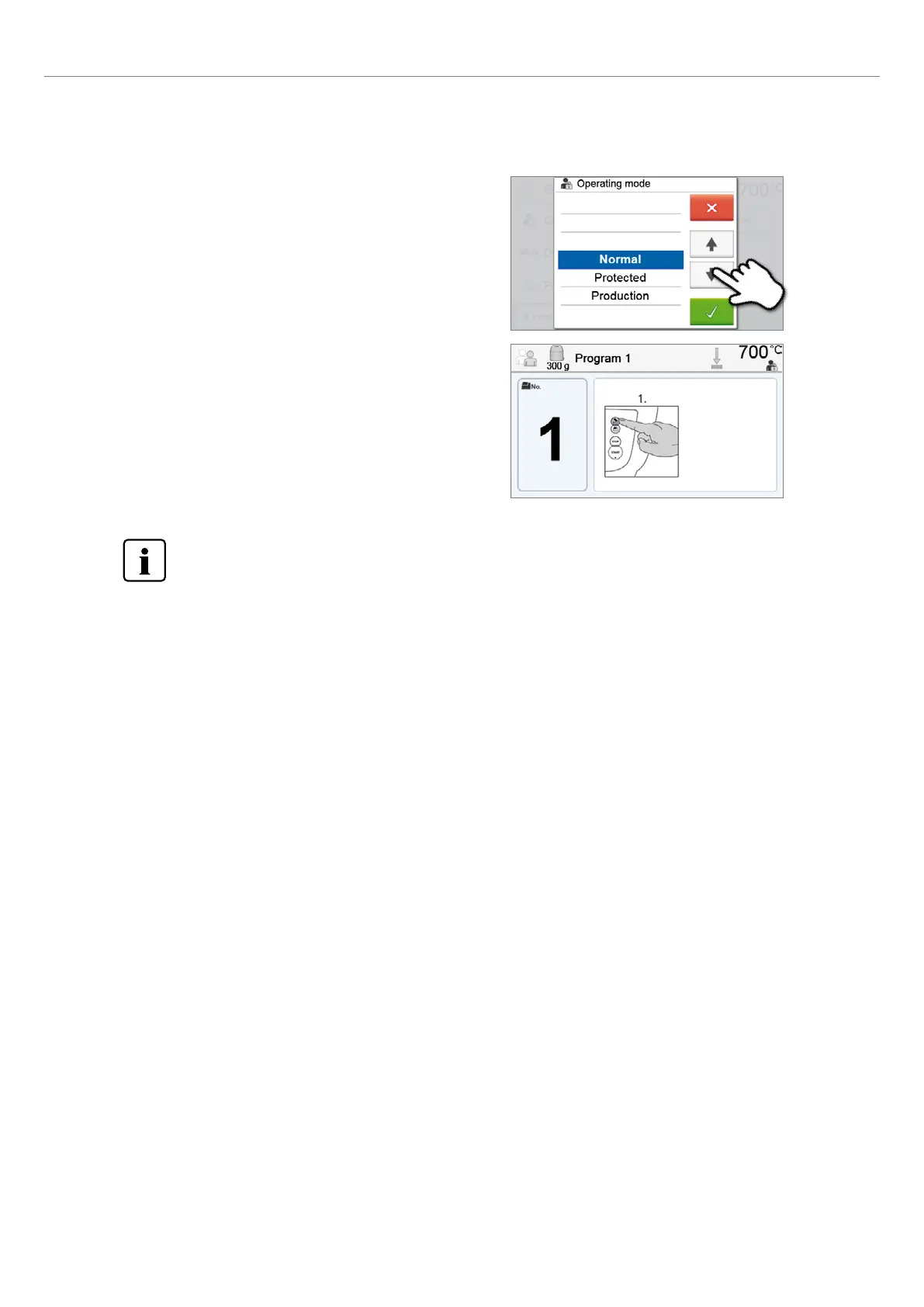 Enter the desired operating mode and confirm the entry with the