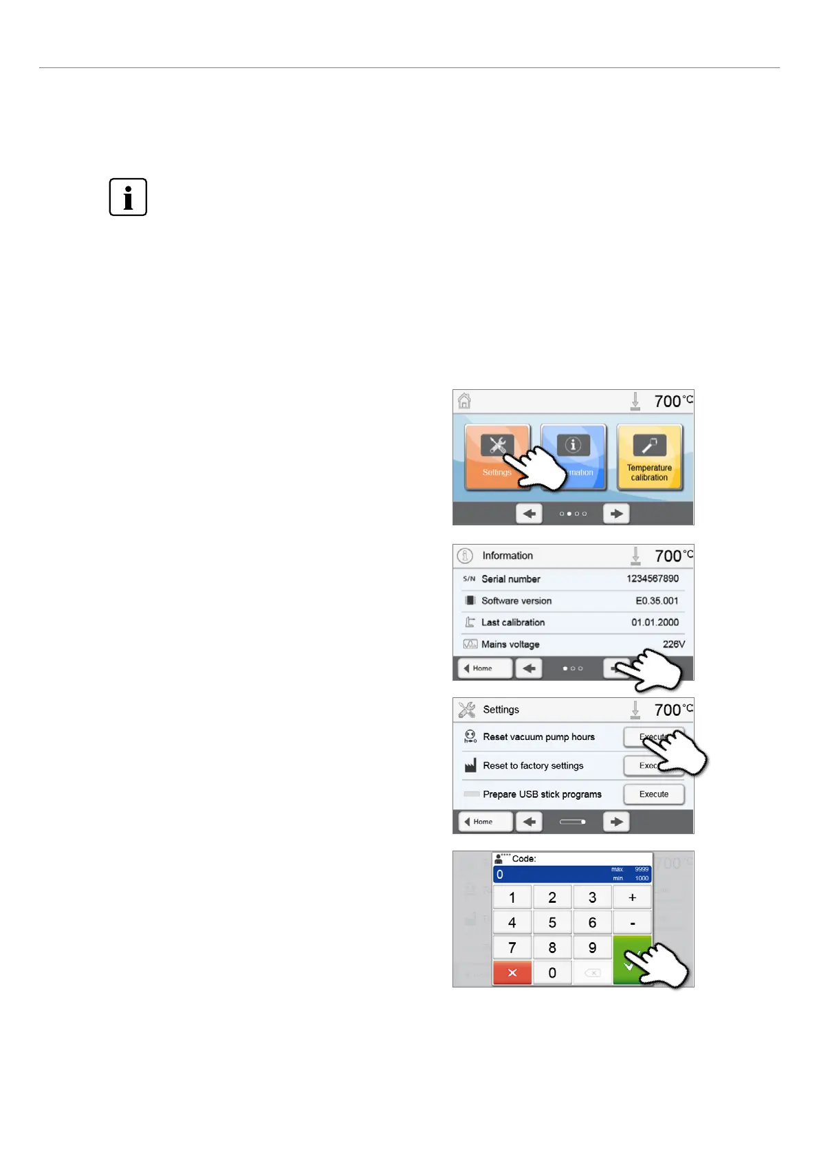 The furnace can be reset to the original settings by resetting to factory settings. In this process, all programs, melodies and