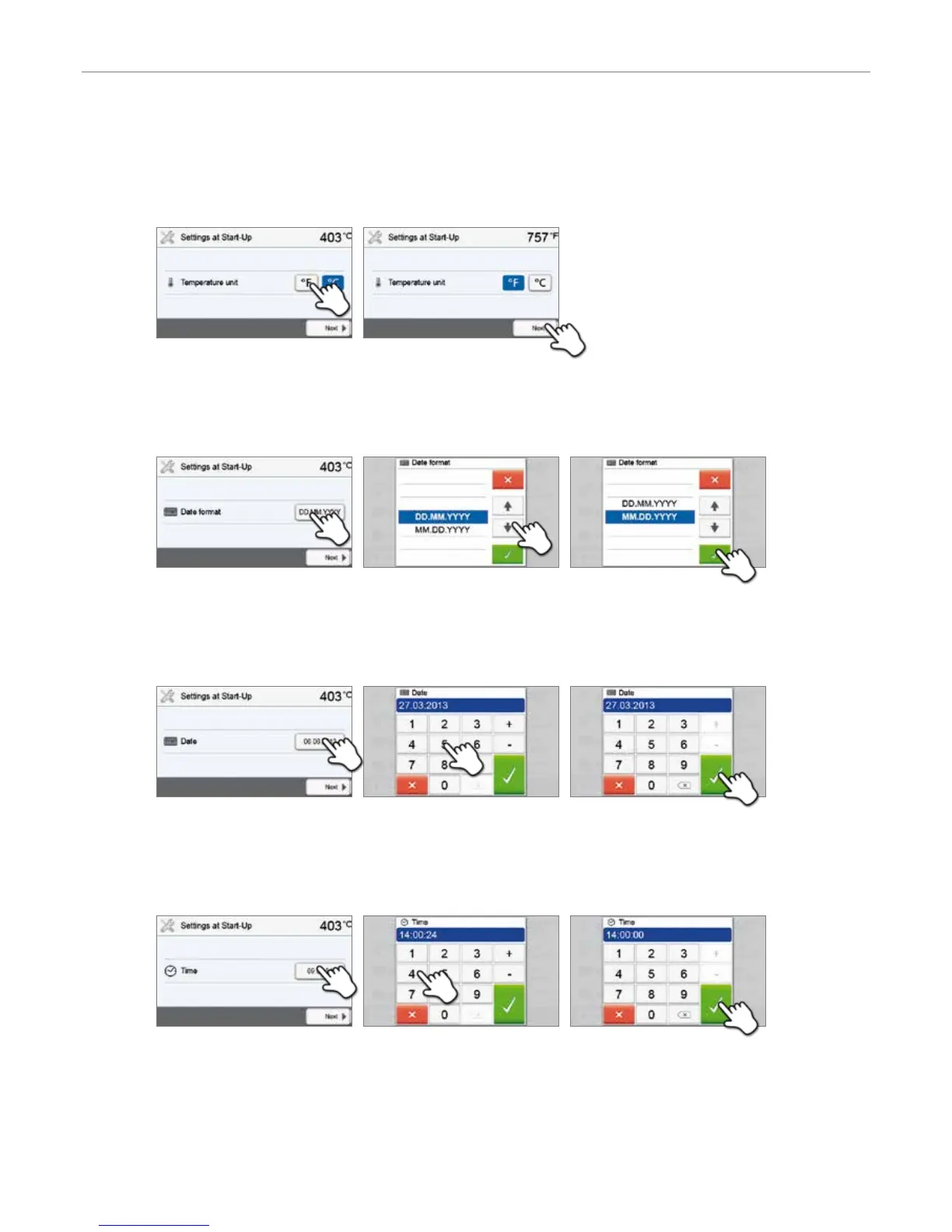 Confirm the entry with the green button. The [Next] button is used to reach the next entry screen.