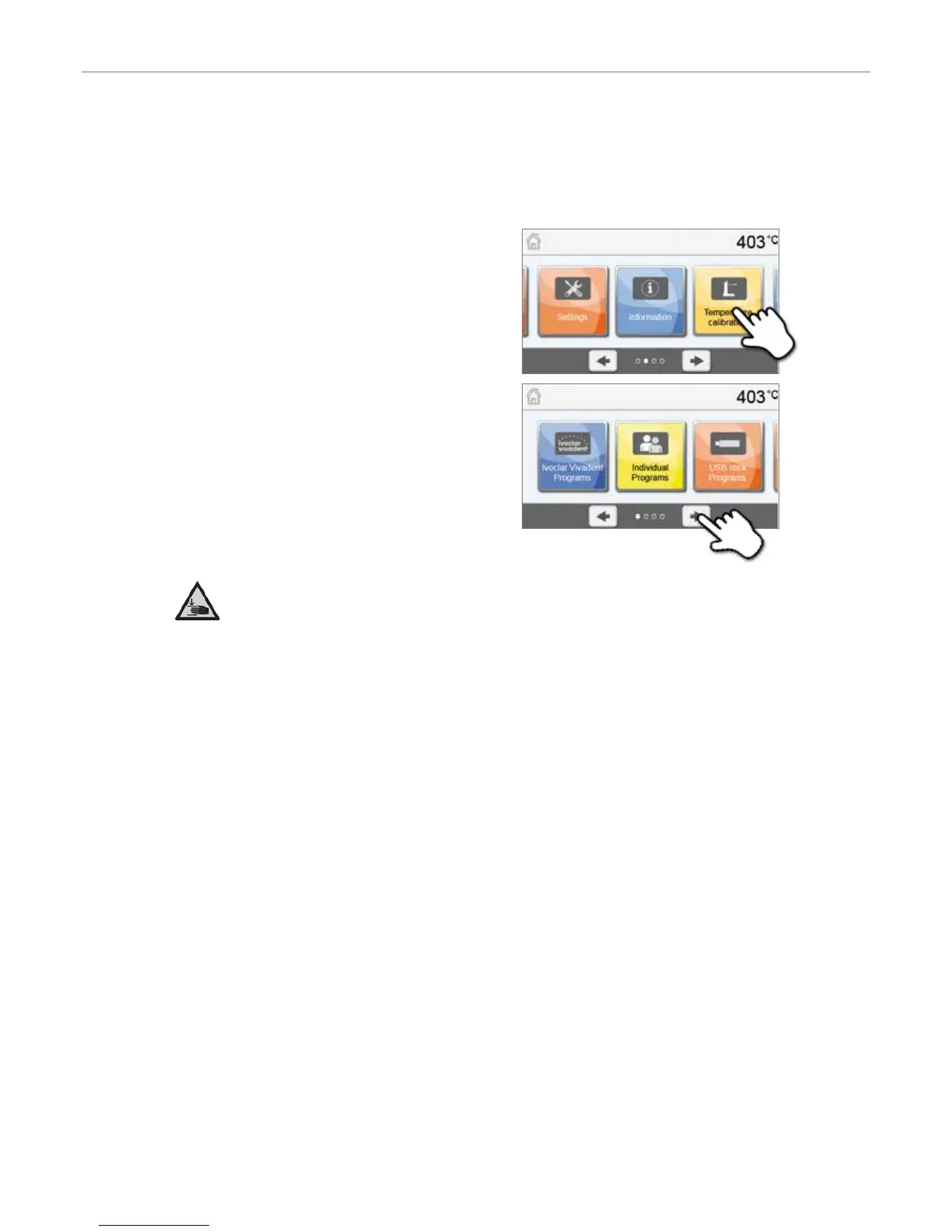 After the furnace is switched on, the display shows the home screen. All functions of the Programat can be selected from