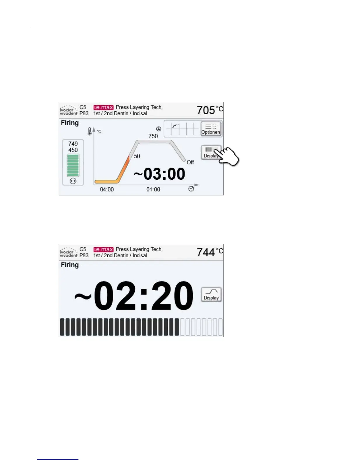 If the [Display] button is pressed while the firing curve is displayed, the remaining time will be shown. The remaining time