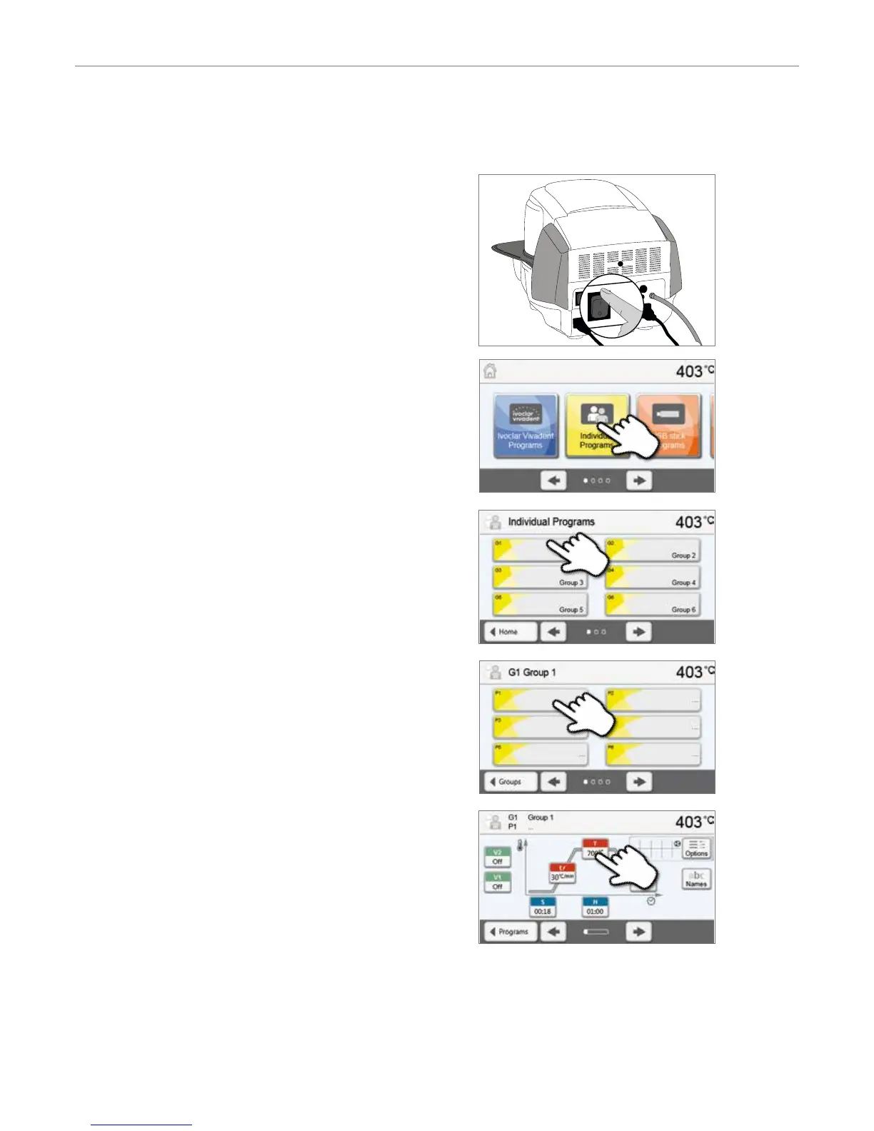 Switch on the furnace with the mains switch at the rear of the furnace.