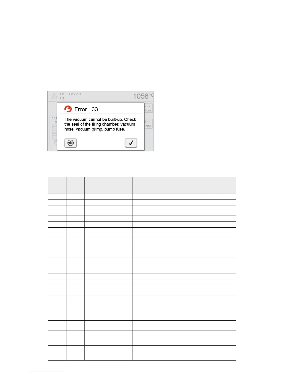 The following error messages may be displayed. If there are any questions, please contact the Ivoclar Vivadent After Sales
