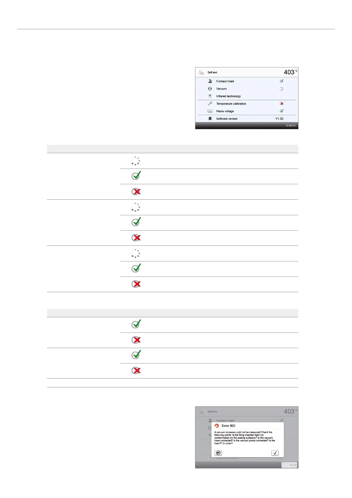 The vacuum test failed. Please note the error message on the display.