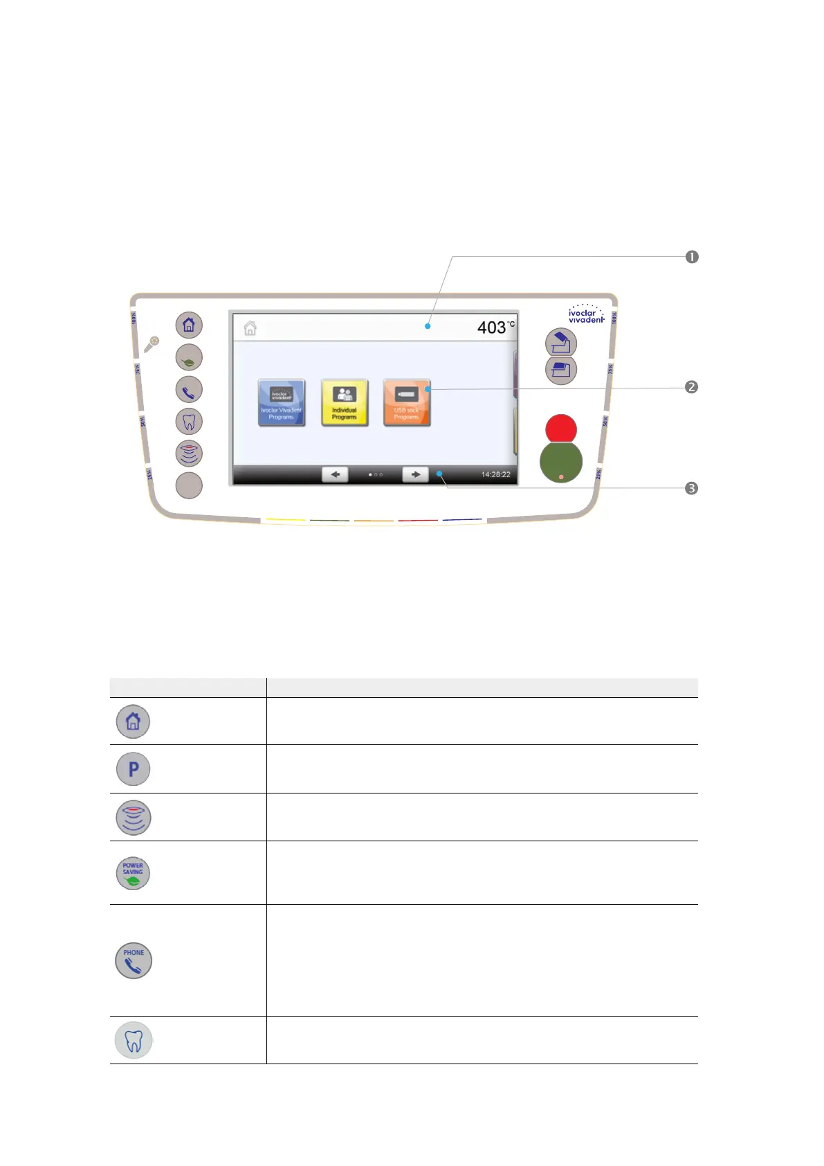 2. Main screen (e.g. editing firing programs, changing the settings, etc.)