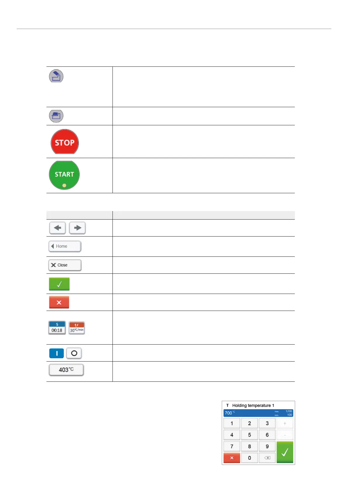 Pressing these buttons results in a selection list or numeric pad for entering the values to
