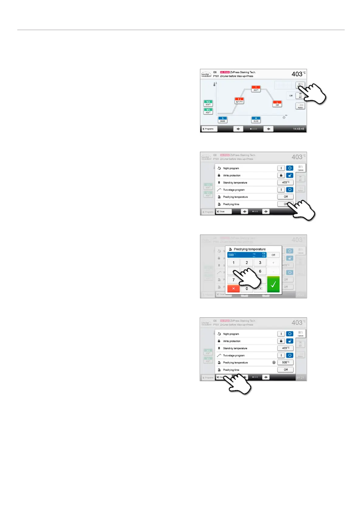 2. Press the [Pre-drying temperature] button.