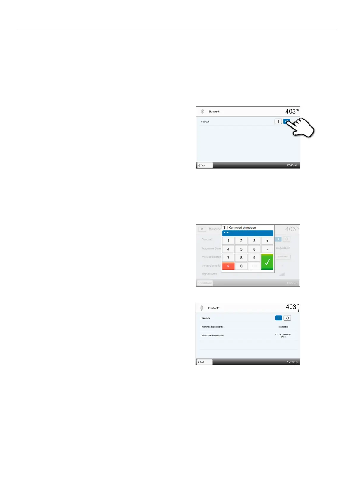 A connection with a mobile phone can be set-up in the Settings menu. This function is only available if the Programat