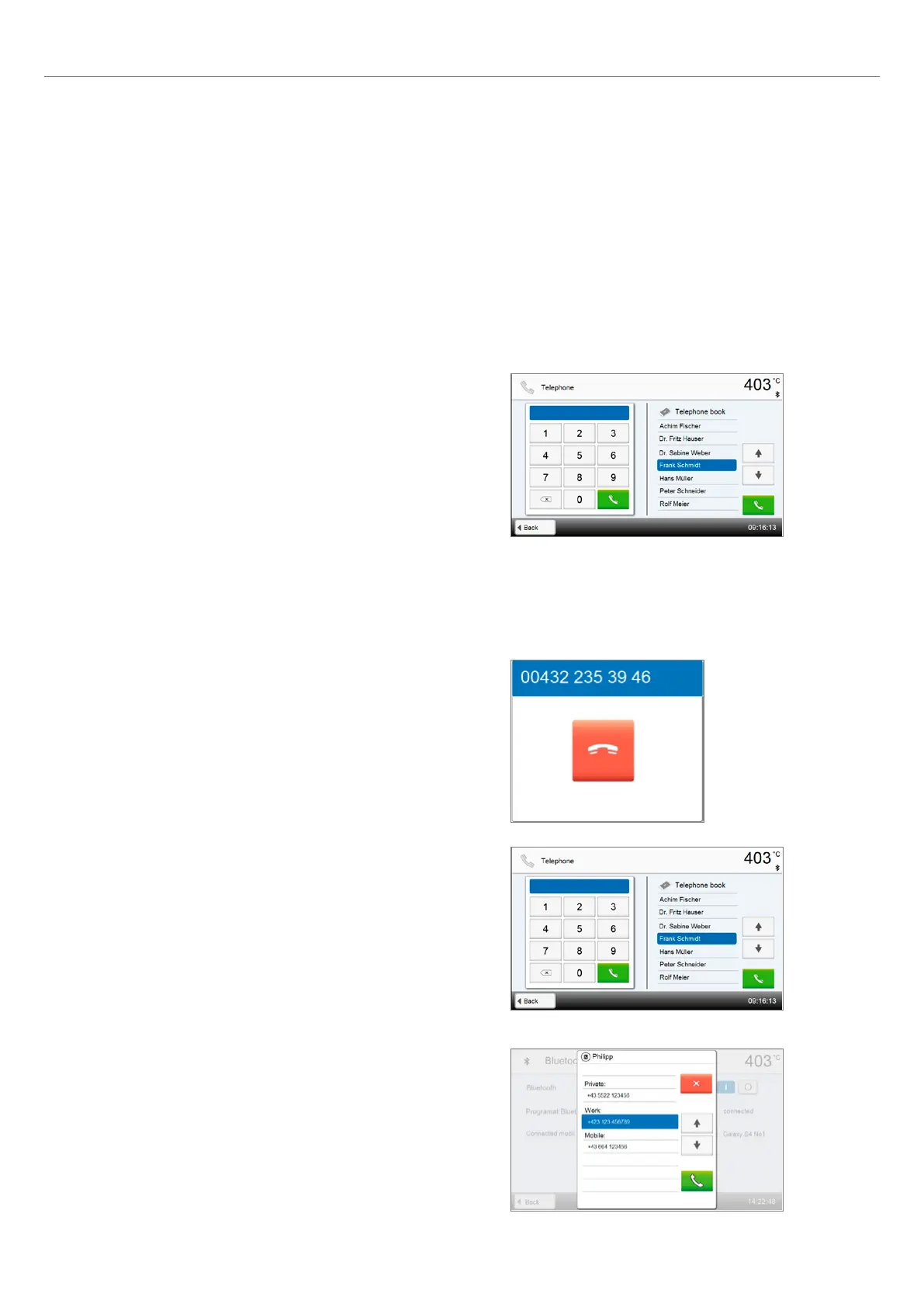 the screen. The number is dialled by pressing with the green [Call]