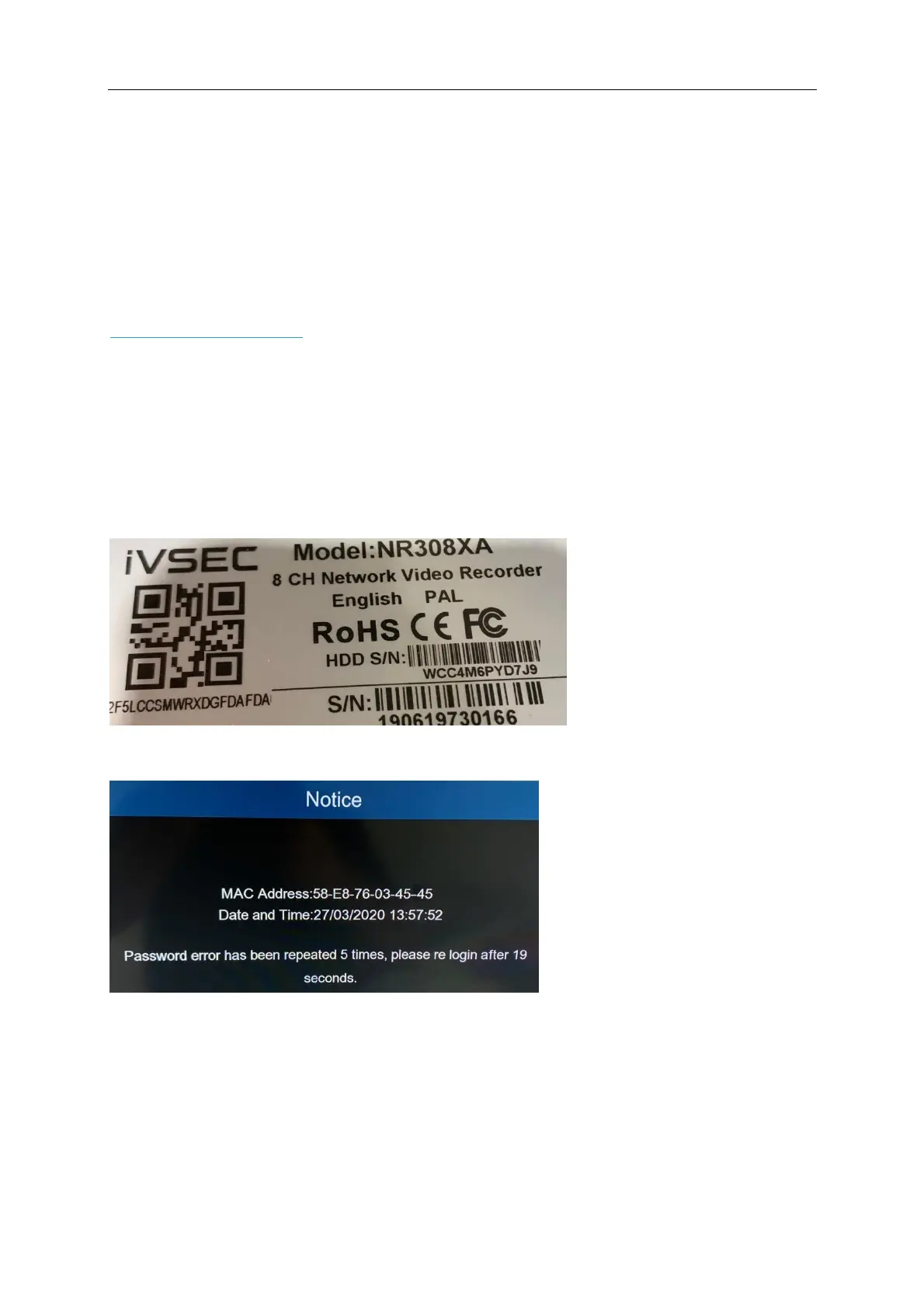 A photo of the NVR serial number sticker.