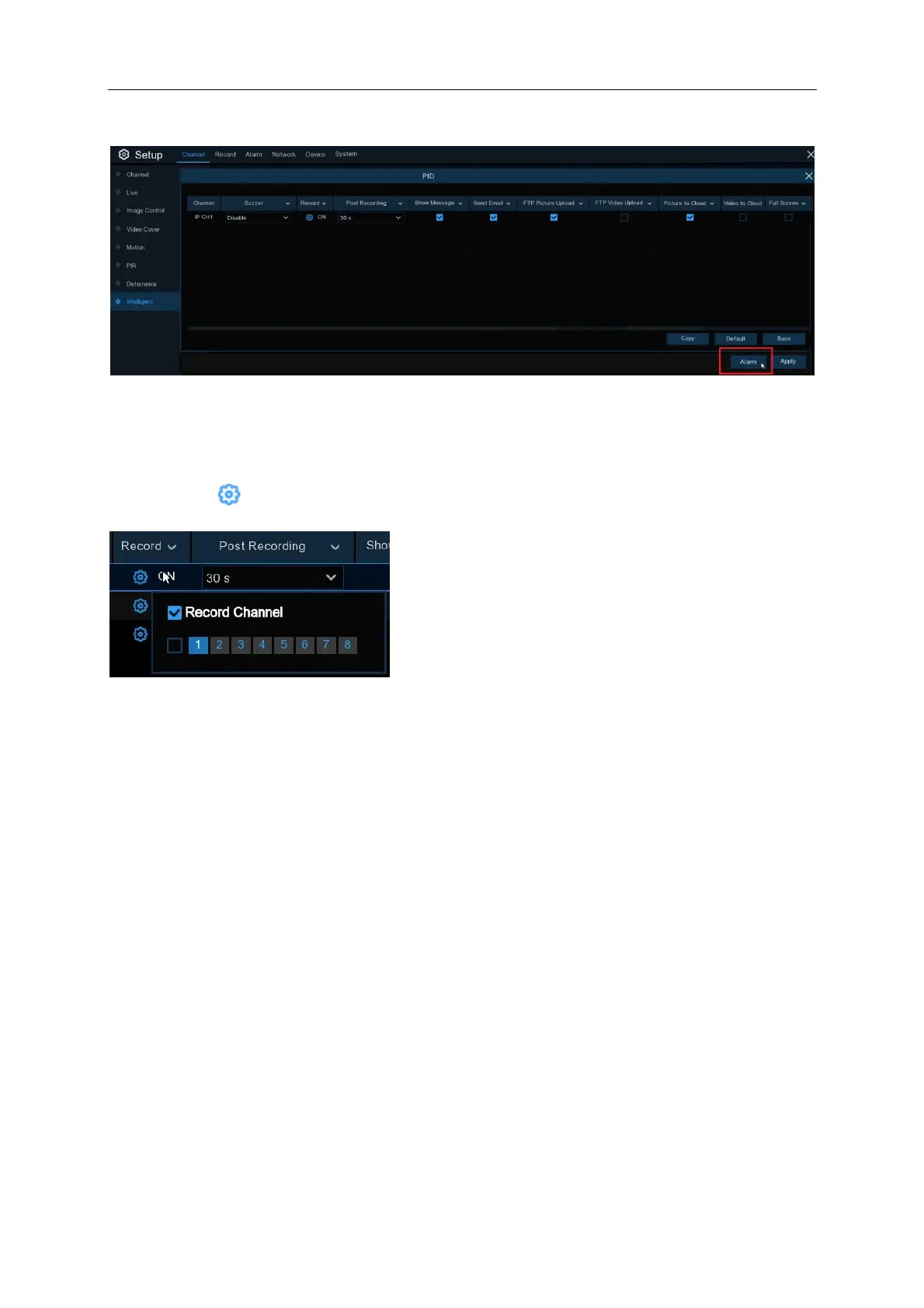 Record: Click icon and choose which channel(s) you want to record when the PID event is