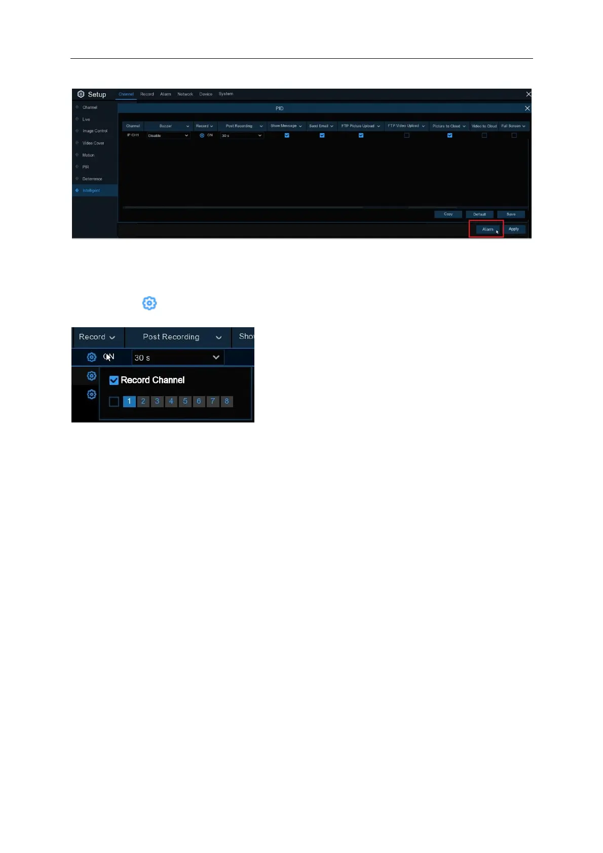 Record: Click icon and choose which channel(s) you want to record when the PID event is