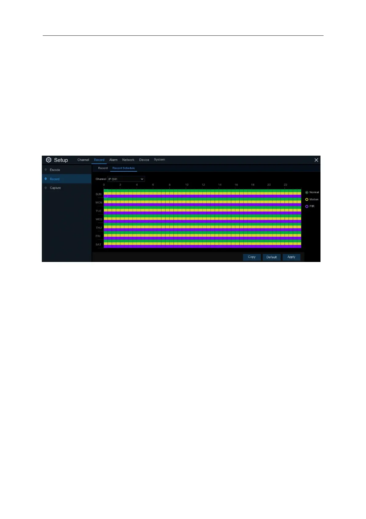 each channel. The recording schedule lets you set up a schedule like, daily and hourly by normal