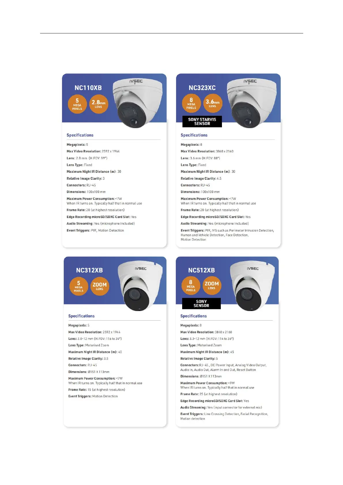 1.2 IVSEC Dome Camera Specification Comparison