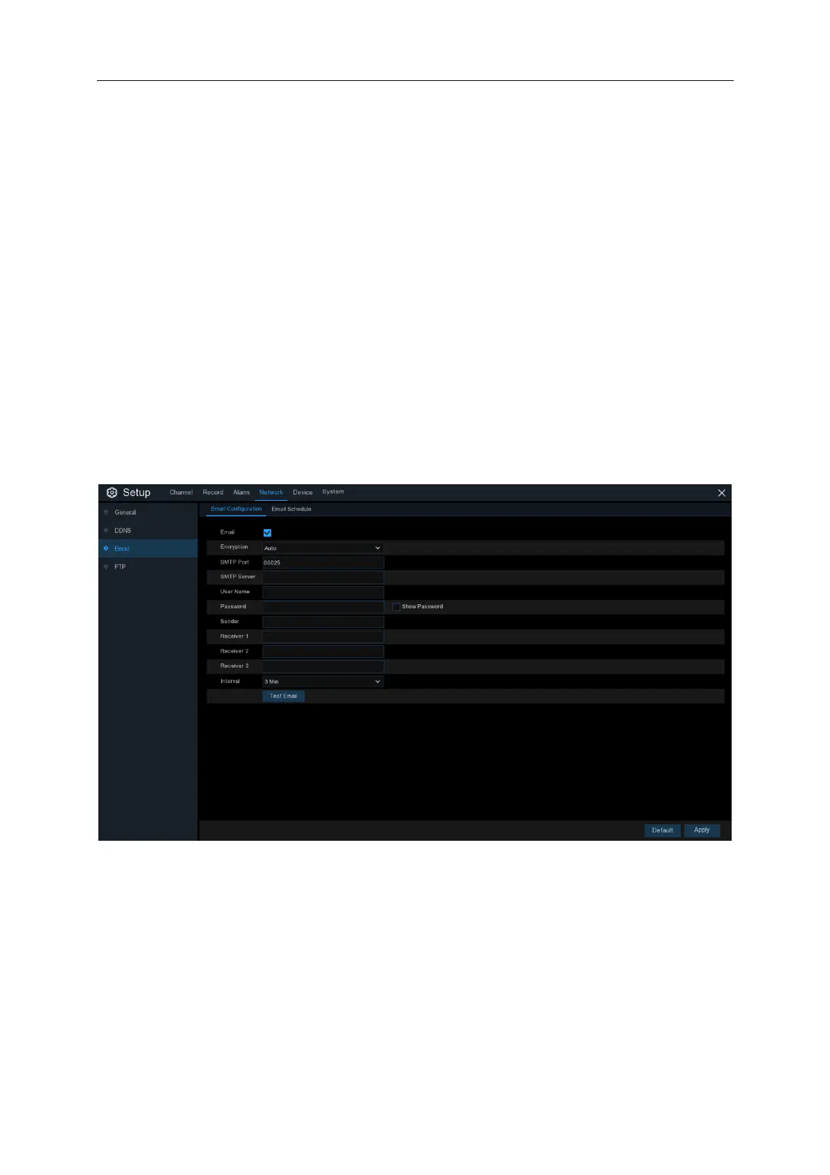 This menu allows you to configure email settings. Please complete these settings if you want to