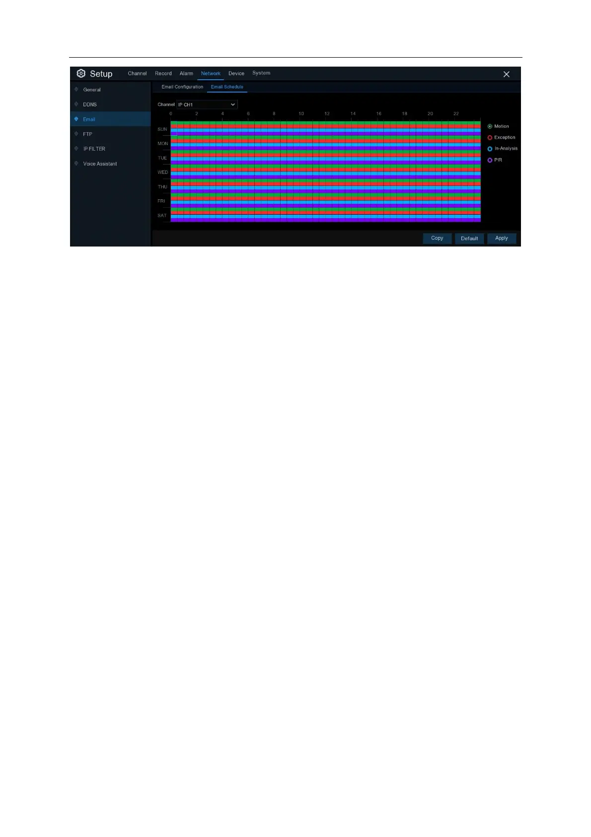 Red: Slot for Exception (HDD full, HDD error, or Video Loss).