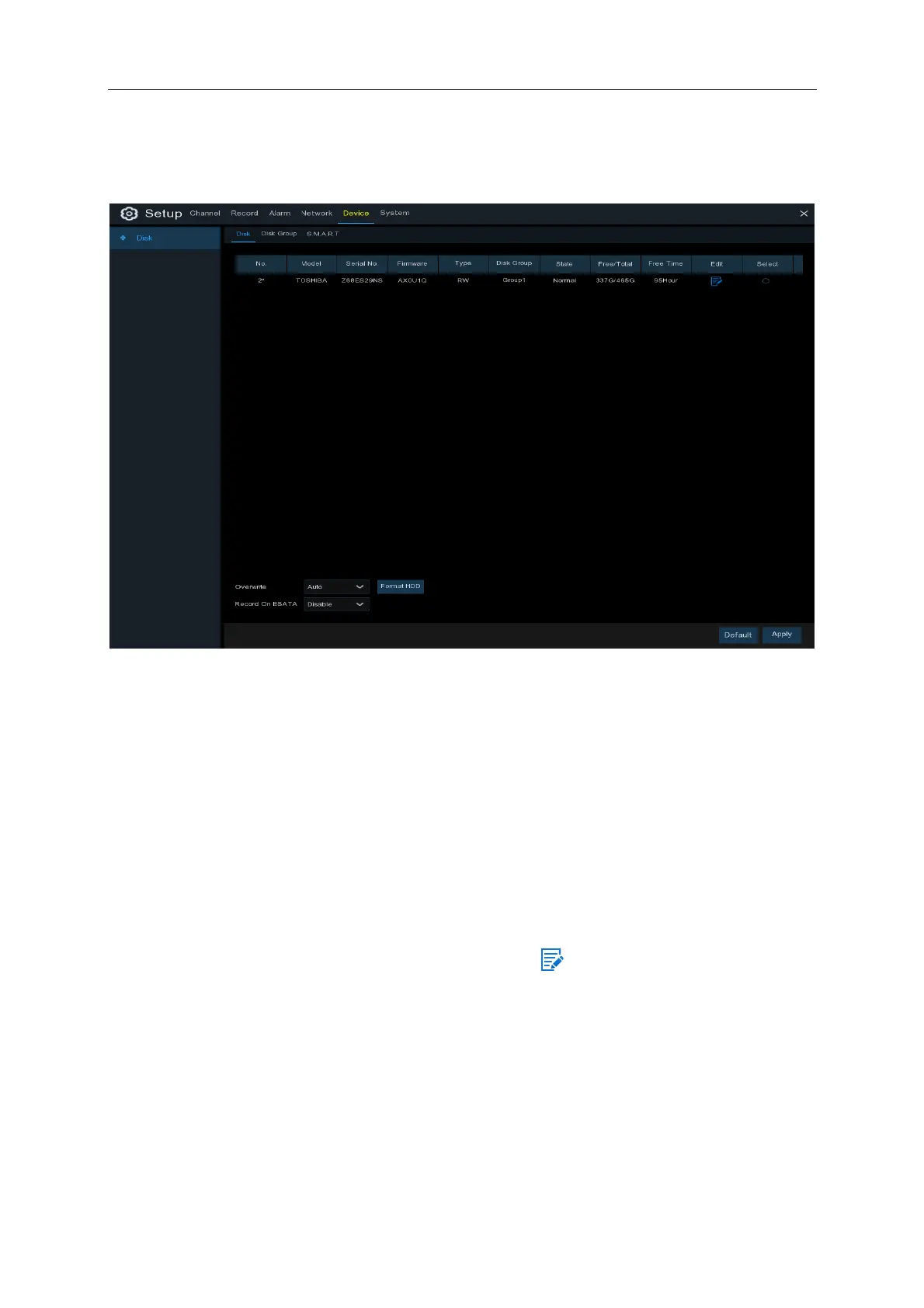 If your NVR supports to install multiple HDDs, the edit icon appears in your system, you can