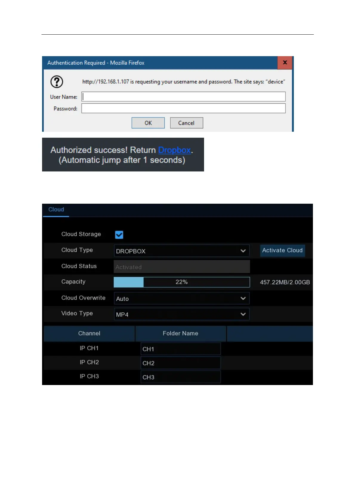 Authentication Required: Enter the username and password of your NVR. Click OK