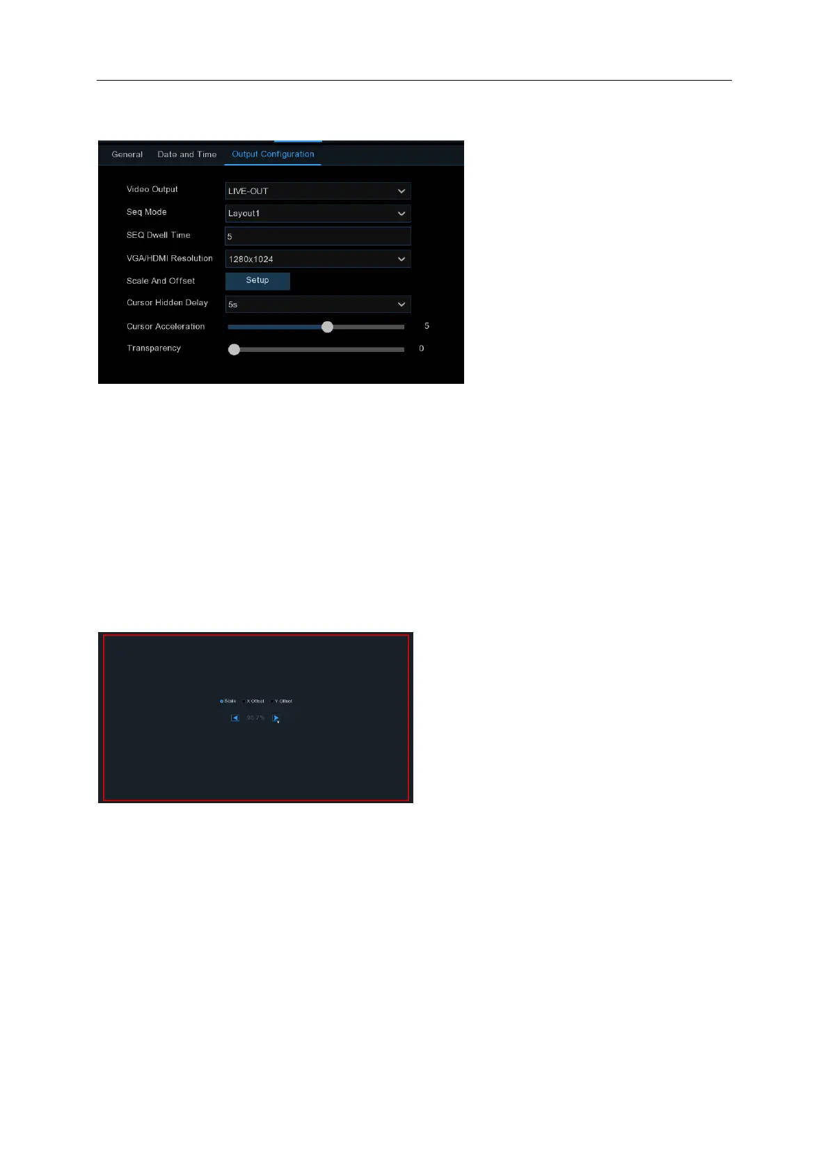 Scale and Offset: The NVR supports to adjust the size & position of the display screen to match