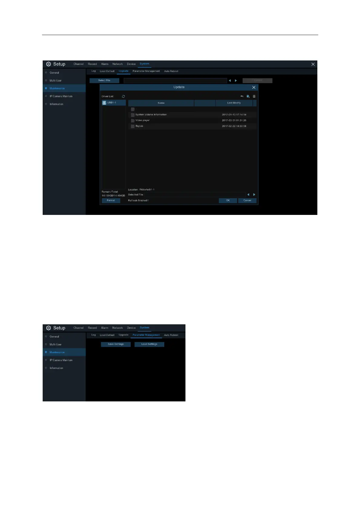 Save Settings: Click to save the NVR current system settings to the USB device. You will be