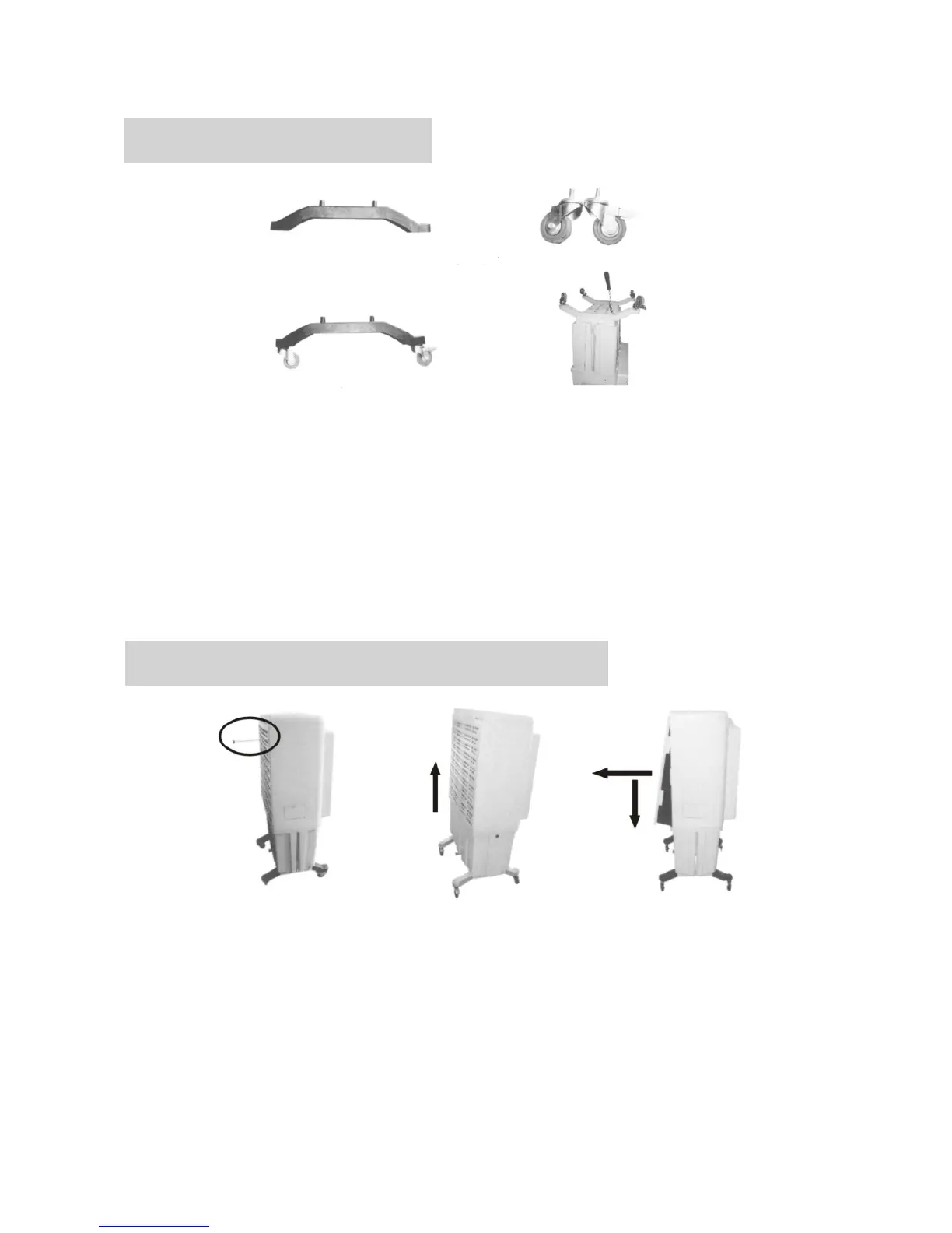 3. Fix the castor frames on the bottom of the water tank using a philipps screwdriver