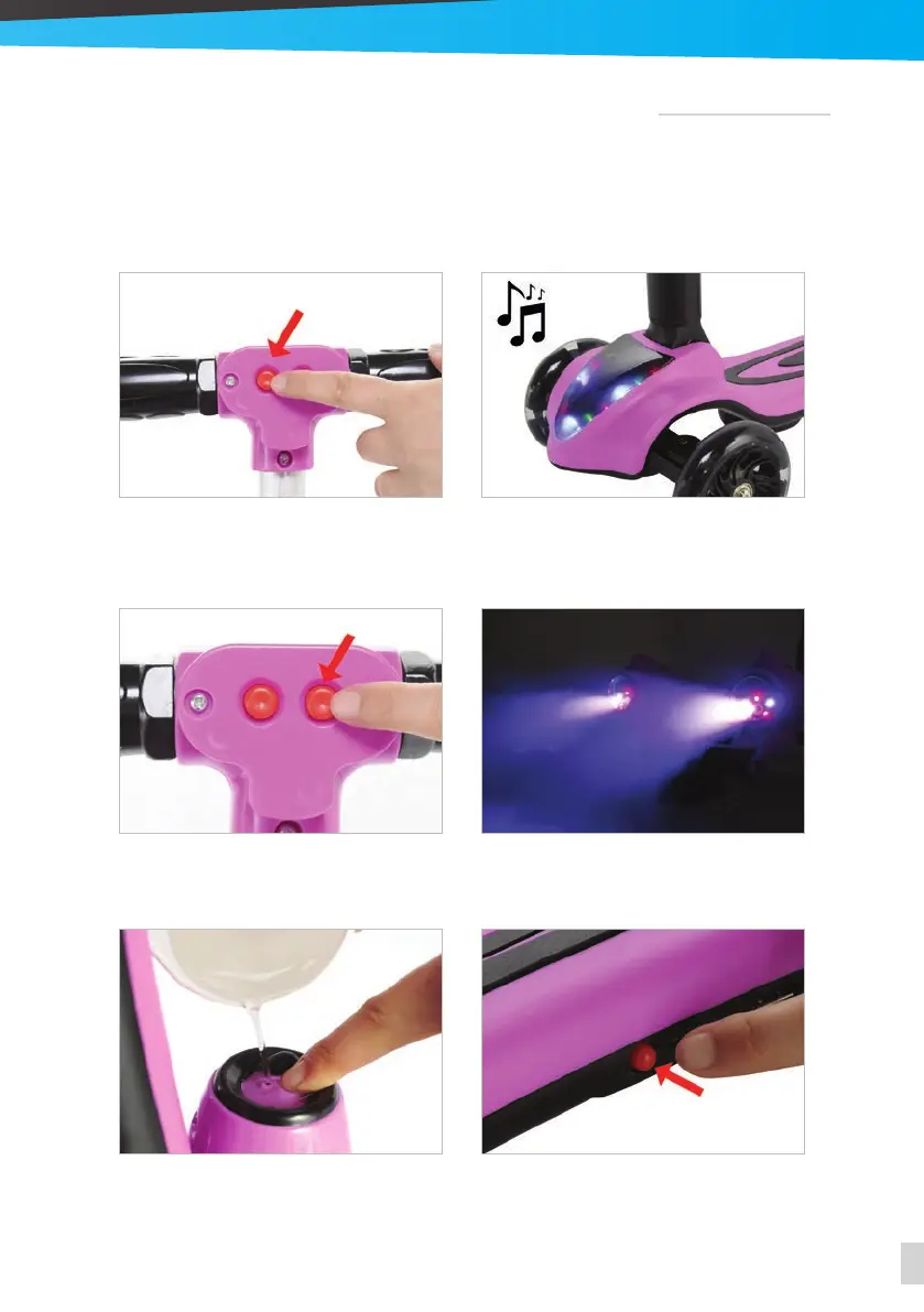 • O botão da esquerda controla a música a as luzes LED.