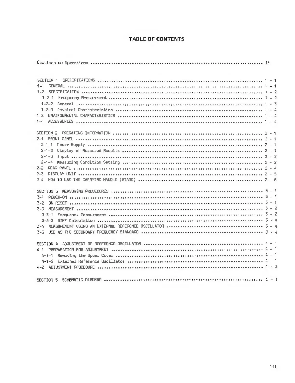 Iwatsu SC7101 - Table of Contents