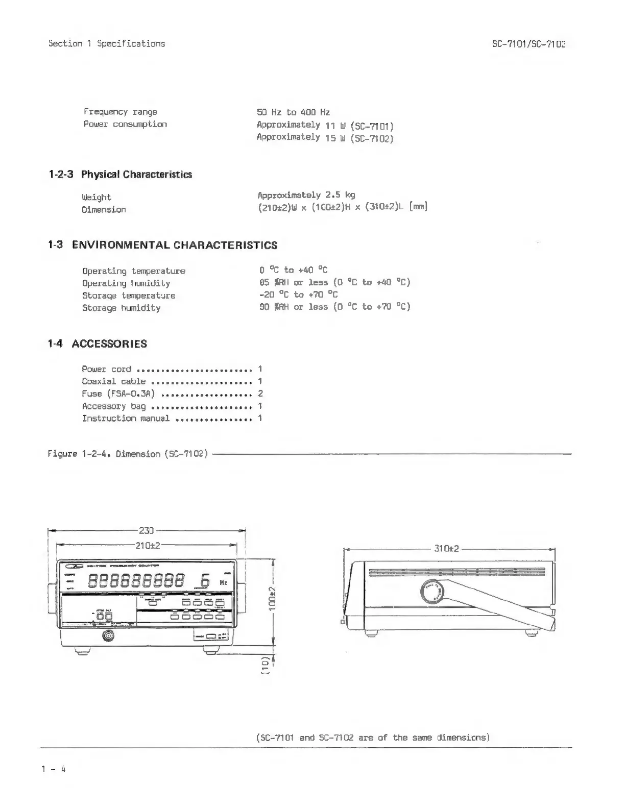 Iwatsu SC7101 - Physical Characteristics; Environmental Characteristics; Accessories