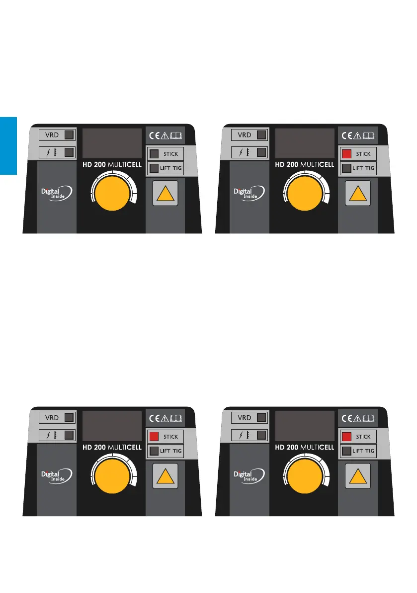 a) Keď sa zváranie zastaví, rýchlo stlačte tlačidlo [STICK / LIFT TIG a prepínač VRD], rozsvieti sa