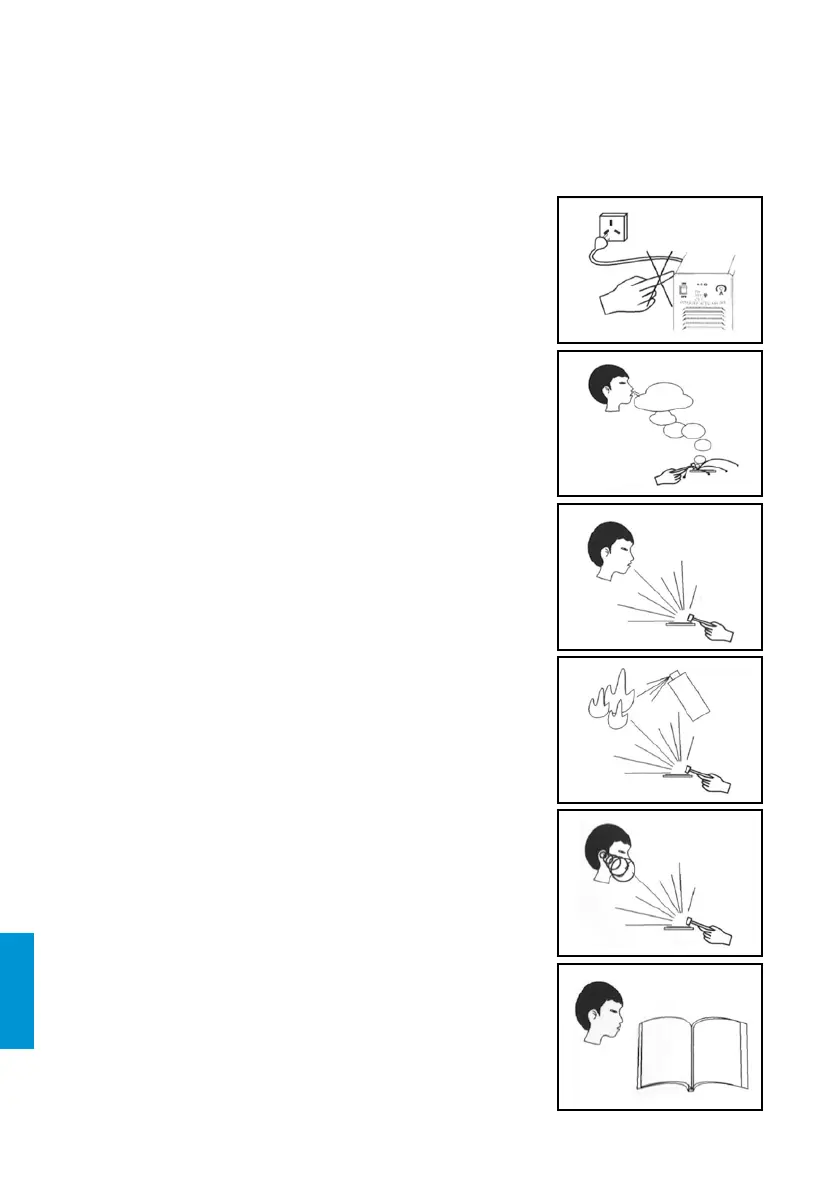 • Wear proper welding helmet, anti-radiation glass