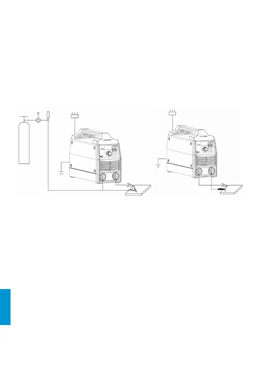 Negative connection: work piece connects with the “-” terminal, while electrode holder con-