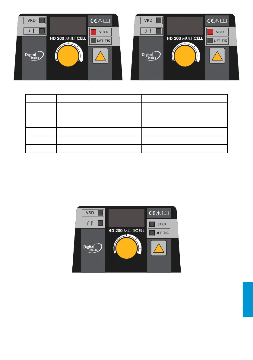 lights up, and it turns into LIFT TIG mode, the front panel displays as Chart 3.