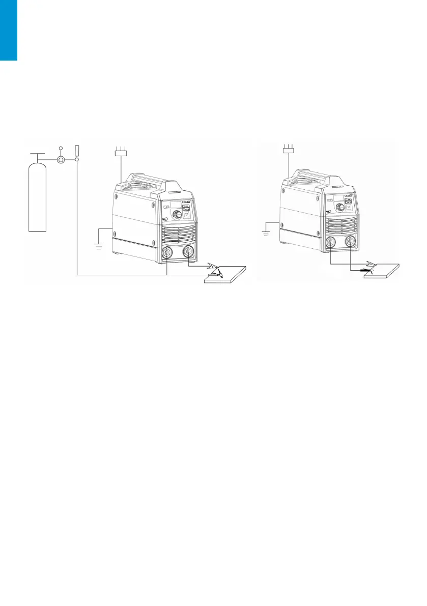Kérjük, vegye gyelembe a csatlakozáskor, hogy az egyenáramú hegesztőgépnek két csatlako-