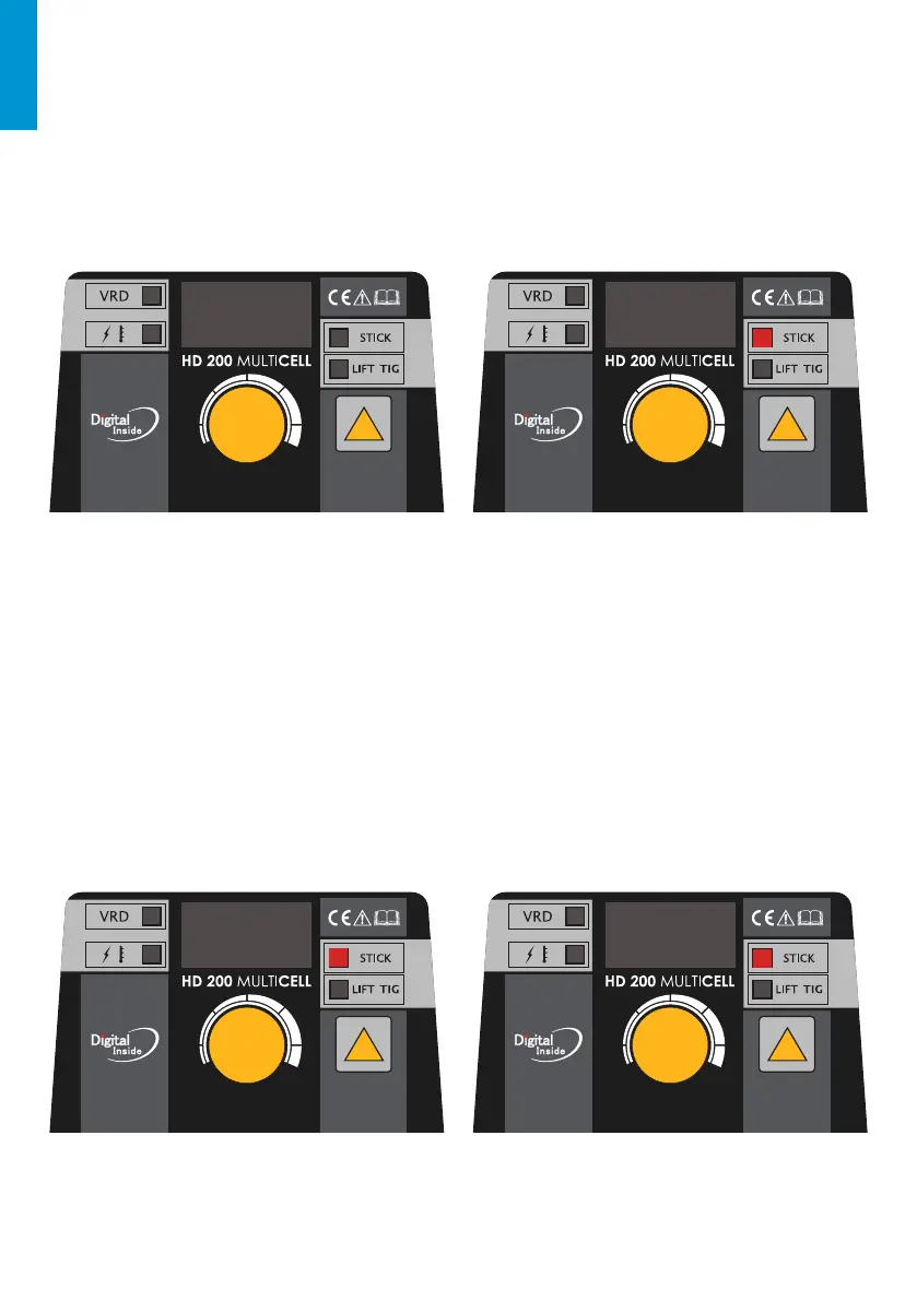 a) A hegesztés előtt nyomja meg röviden a [STICK / LIFT TIG és VRD ] gombot, a STICK jelzőfény