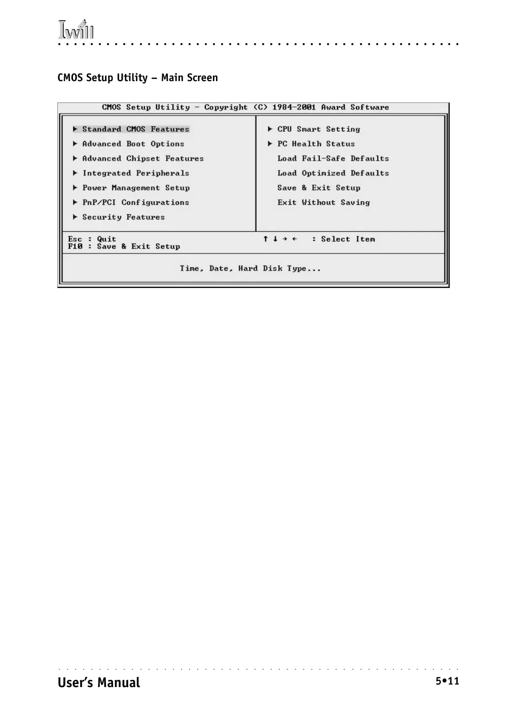 CMOS Setup Utility Main Screen