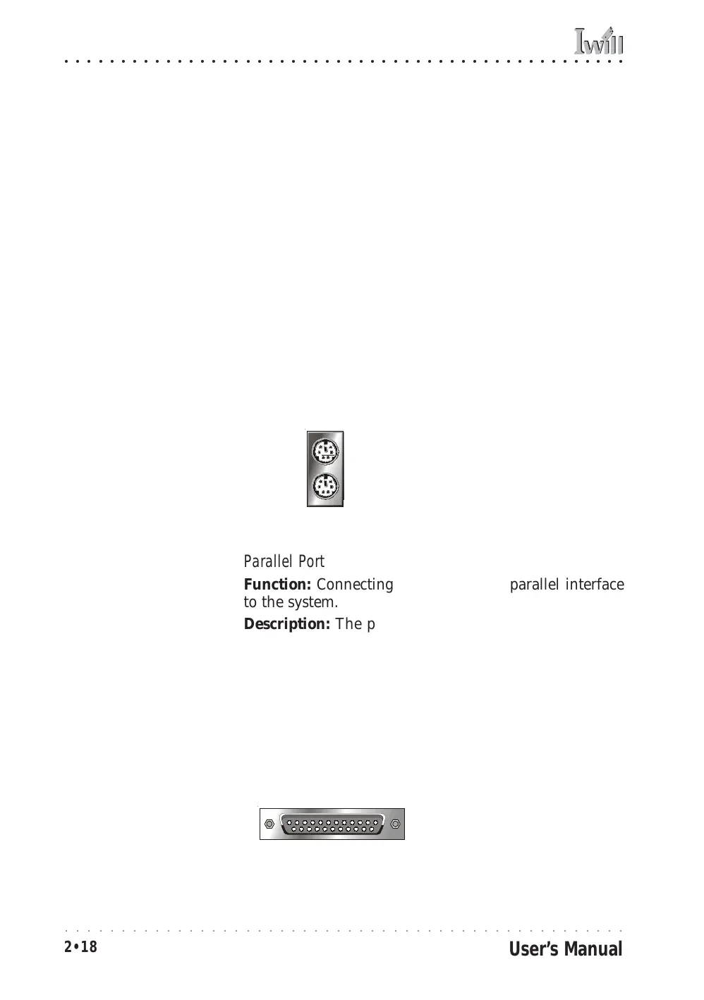 Description: The parallel port is generally used to con-