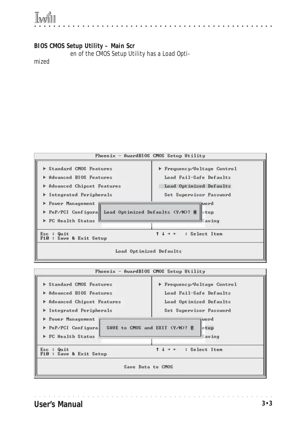 The main screen of the CMOS Setup Utility has a Load Opti-
