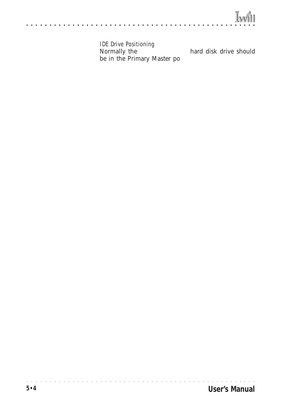 Normally the system’s primary hard disk drive should
