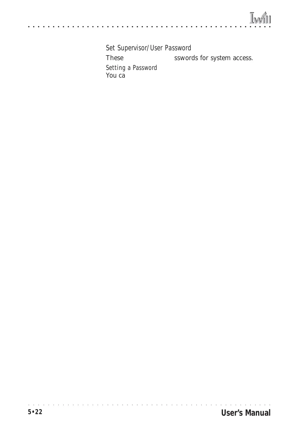 Set Supervisor/User Password