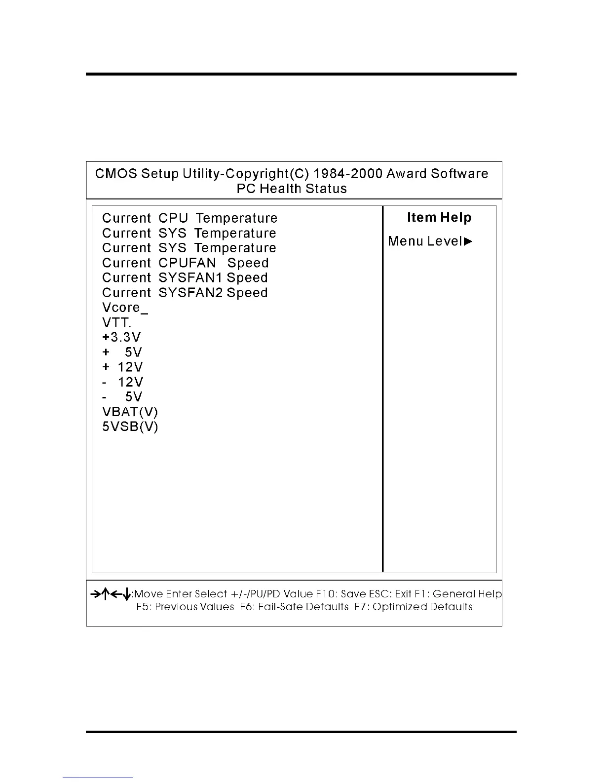 displays CPU/System temperature, FAN speed, and voltages.