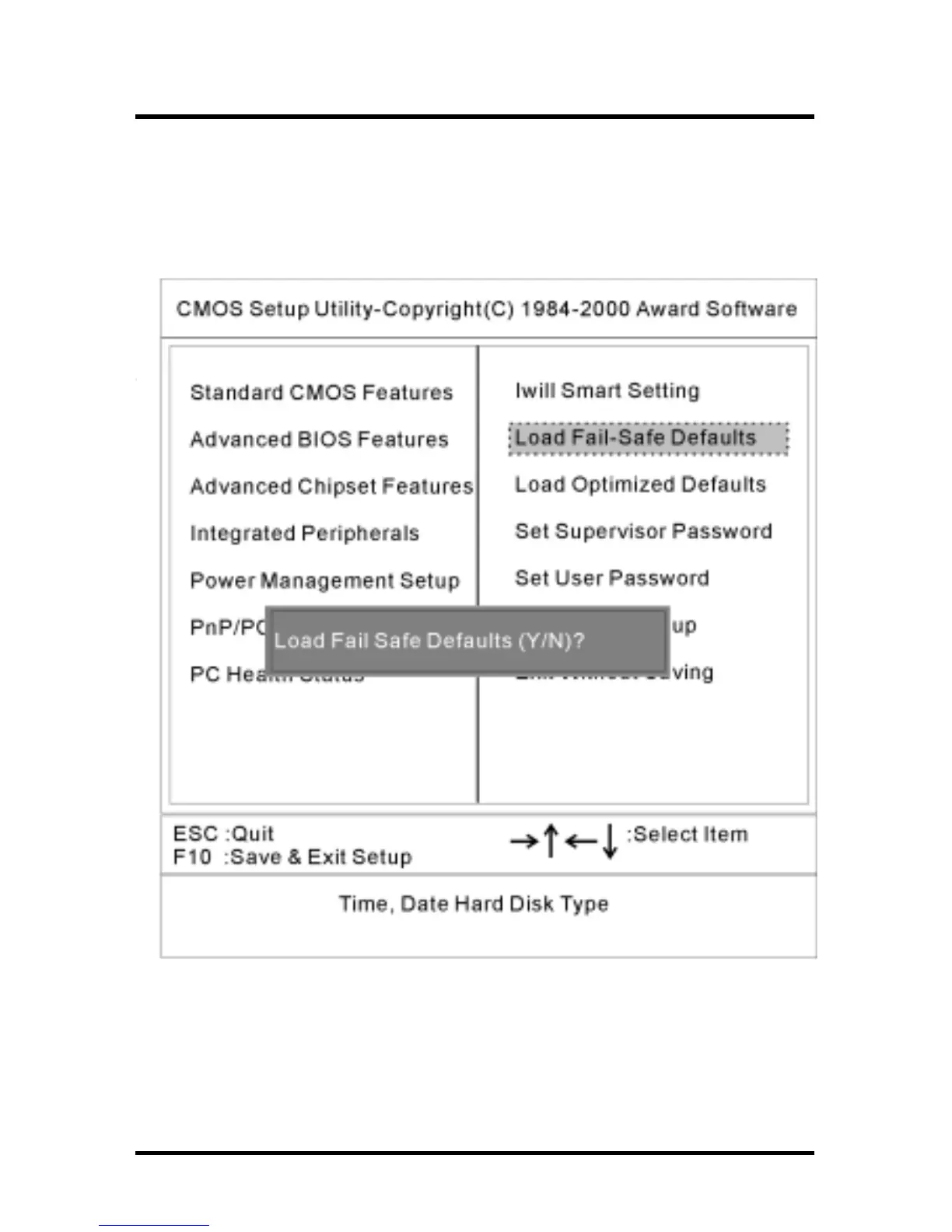 box with a message similar to: Pressing ‘Y’ loads the BIOS default