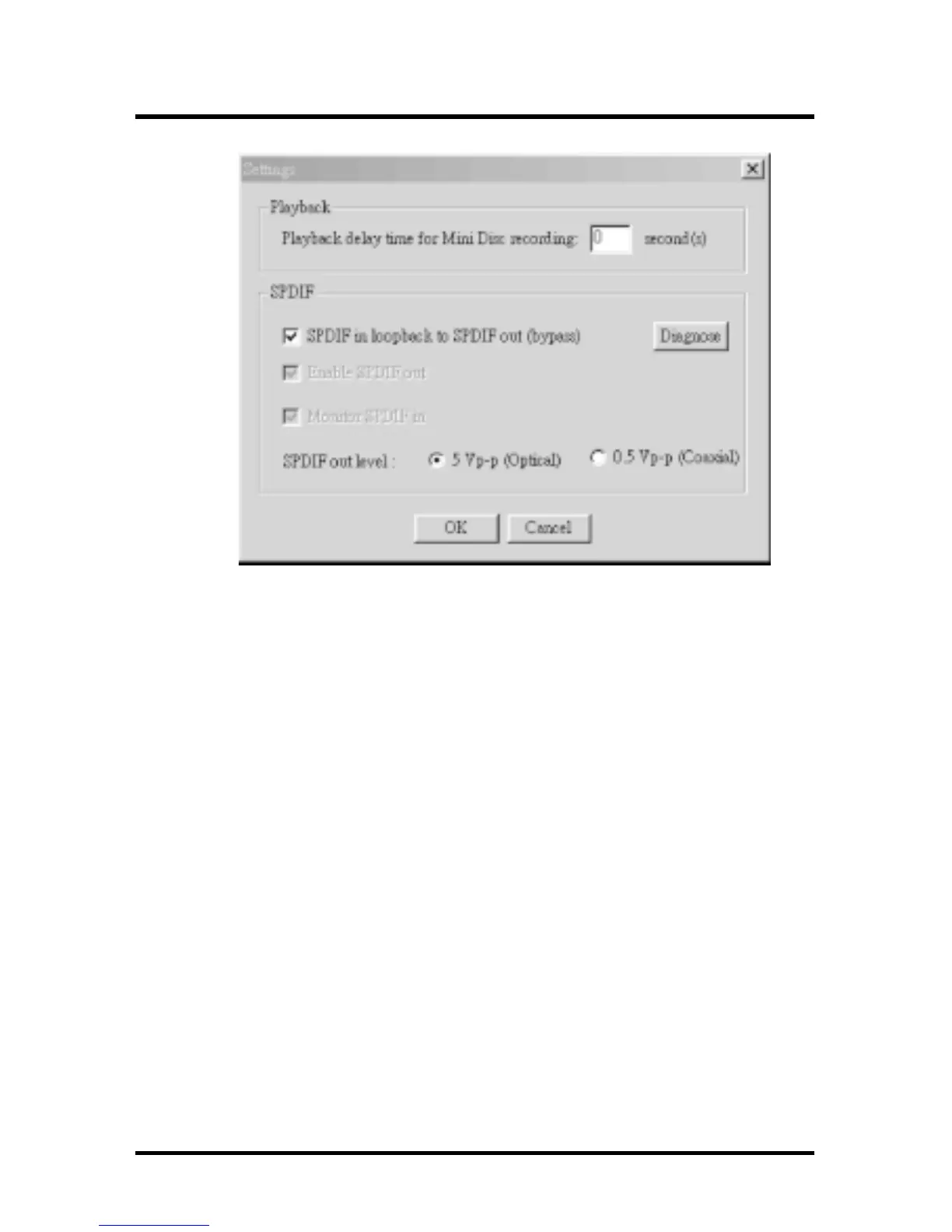 The settings’ window when one of the SPDIF functions is enabled.