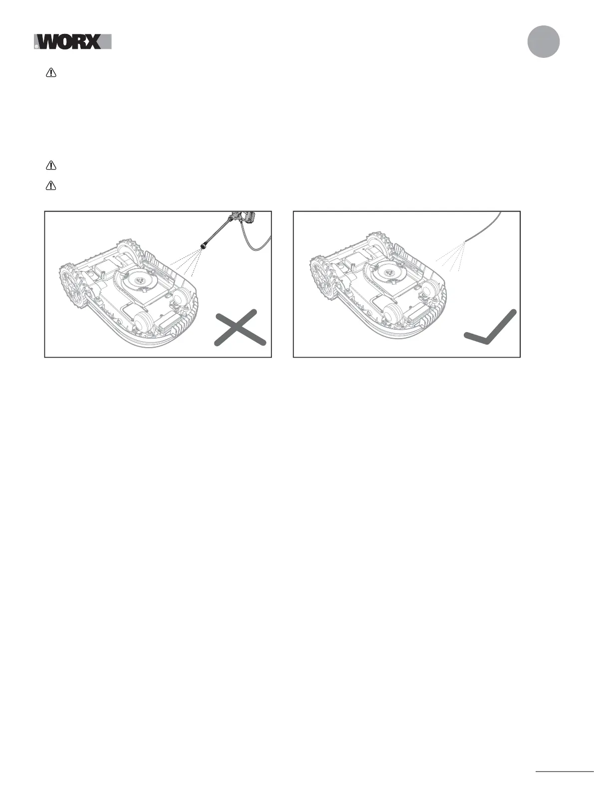 WARNUNG! IHR Landroid kann nur mit einem Schlauch gewaschen werden! Verwenden Sie KEINEN Hoch-