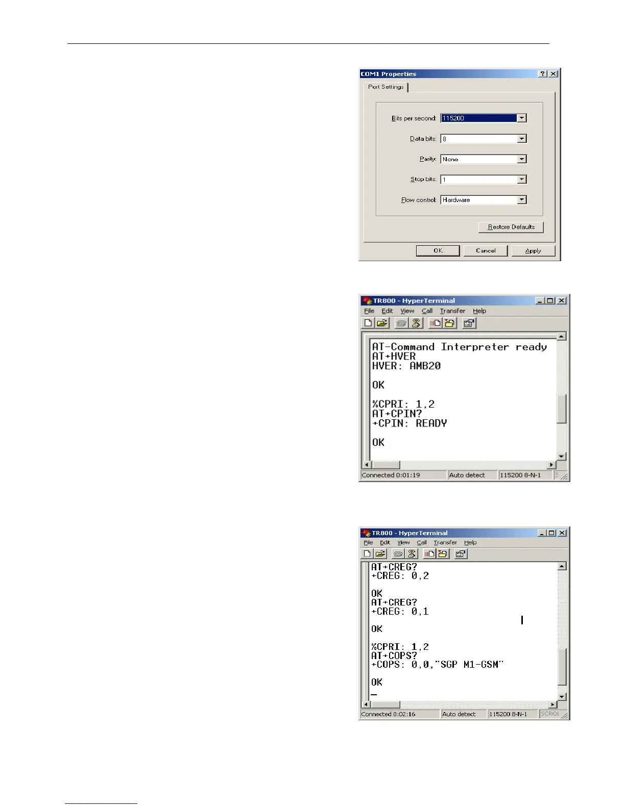 the modem using AT commands.