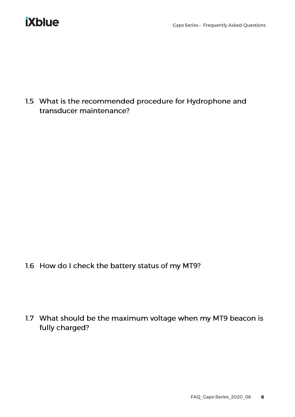 In order to limit growth on the hydrophones, iXblue recommends the use of the following