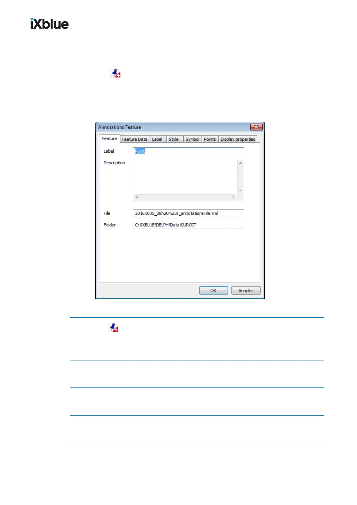2. In Feature tab: enter the Label of the waypoint. You may enter a Description. You may edit