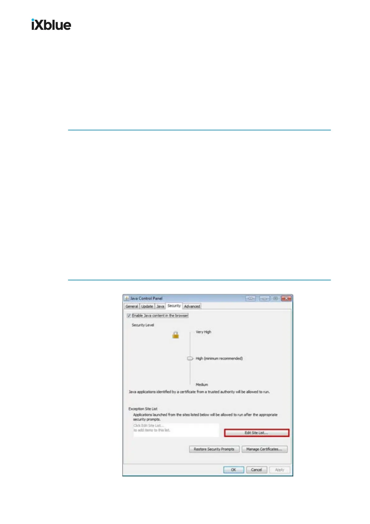 Here is detailed a procedure to follow in order to prevent the security warning box from Java to