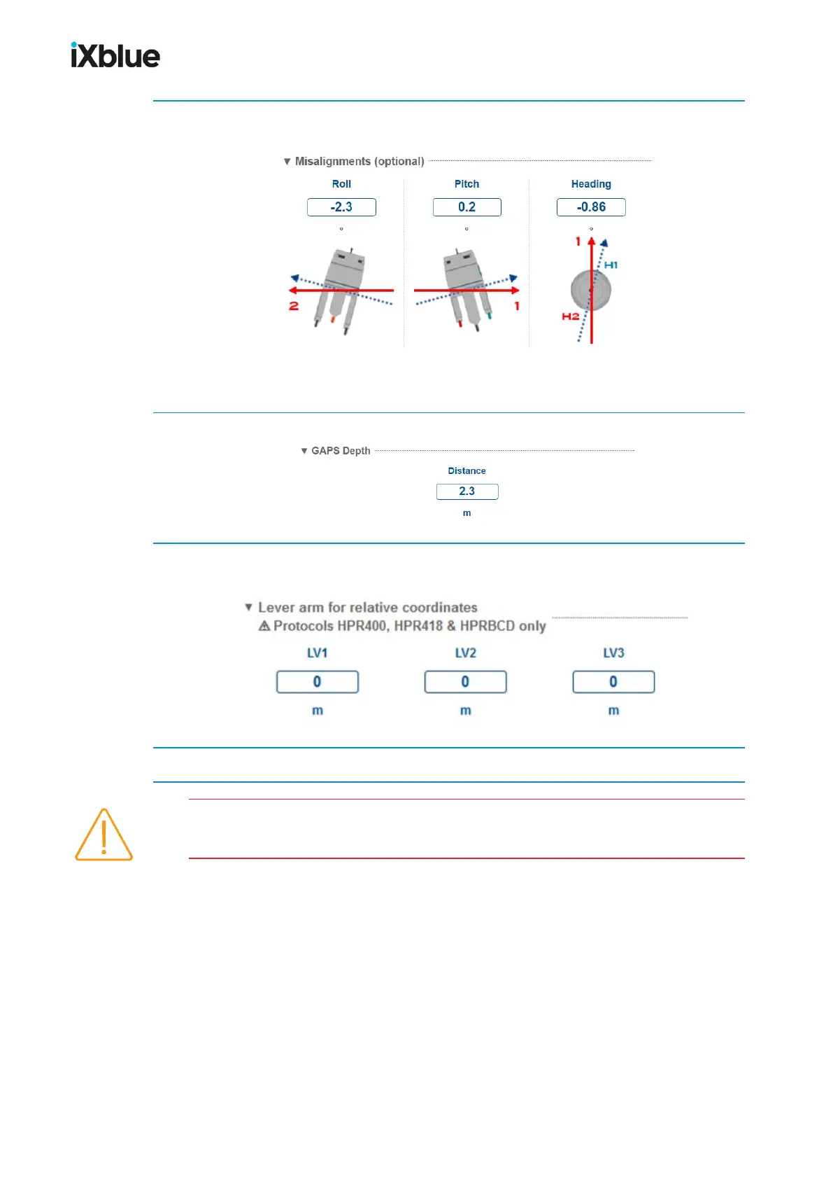 2. In Misalignments (optional), enter the values of Roll, Pitch and Heading. Input only angles