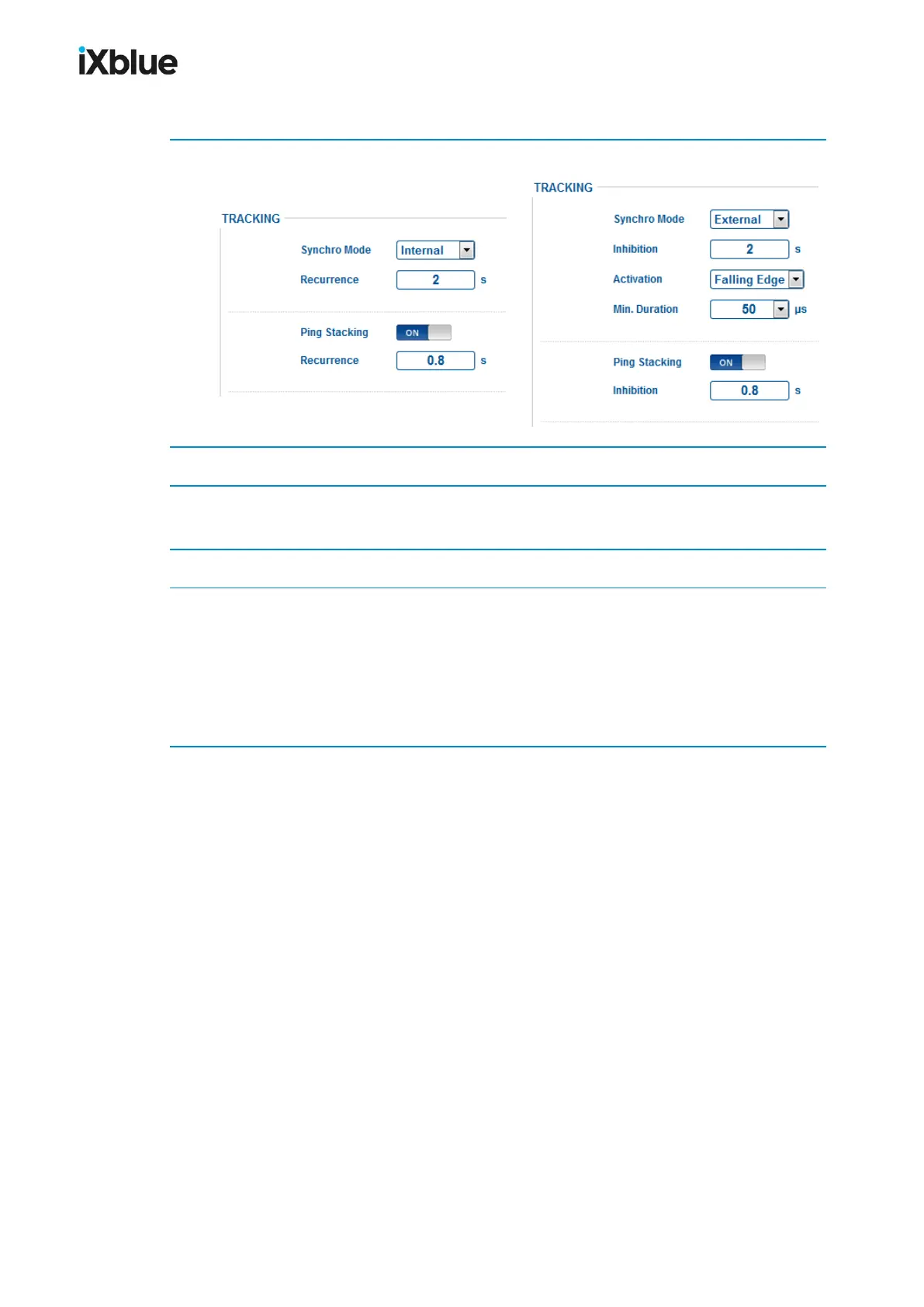 3. Enter a ping stacking Recurrence (internal synchro mode) or Inhibition (external synchro