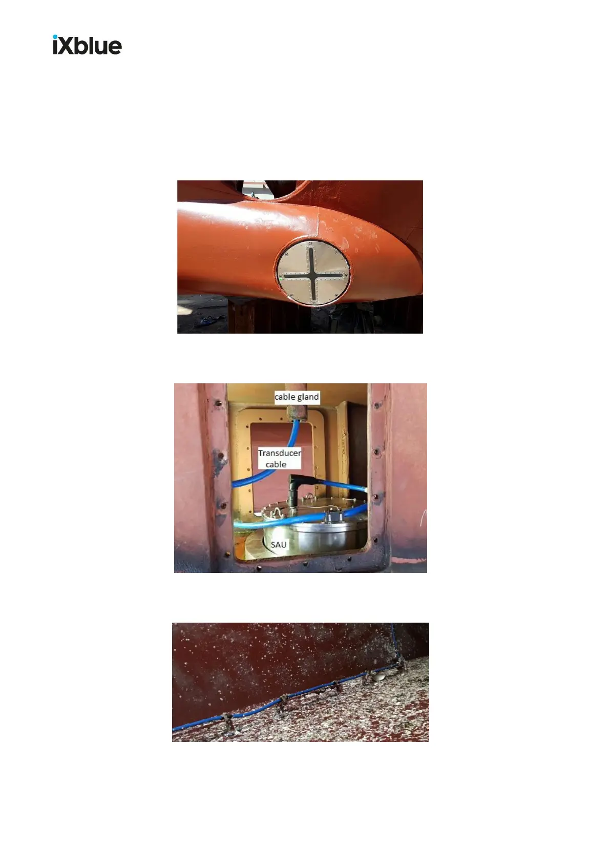 The SAU has been installed on the vessel hull and the transducer cable (also called “subsea